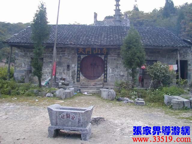 (天門山寺)天門山寺最早建于唐代,古稱云缽庵、靈泉院、嵩梁堂,明代時(shí),因擇址不當(dāng)而屢遭風(fēng)摧又常遭水荒,才將天門山寺從東部山頂遷移至此。以前這里古木參天,濃蔭蔽日。古寺門楣上刻有“天門仙山”四字,大門兩邊的對(duì)聯(lián)是:“天外有天天不夜,山上無(wú)山山獨(dú)尊”,傳為李自成部將野拂撰書。進(jìn)門為大佛殿后面有觀音堂,兩邊六間平房,最后一棟是祖師殿,規(guī)模宏大。民間概括為“三進(jìn)堂、六耳房,磚墻鐵瓦鍋如壙”。山寺原建筑十分講究,飛檐翹角,雕龍畫鳳,并塑有佛道神像菩薩等。還有大鼓一面,千斤大鐘一口,一座七級(jí)石塔和一個(gè)大化錢爐。據(jù)碑刻記載,自清乾隆至民國(guó)五年的163年間,天門山寺共修葺過七次,香火曾盛極一時(shí),湘鄂川黔邊境十多個(gè)縣的信徒絡(luò)繹不絕,都來(lái)這里進(jìn)香拜佛?,F(xiàn)天門山旅游股份有限公司正在大規(guī)模地修復(fù)天門山寺,昔日的繁華又將重現(xiàn)。