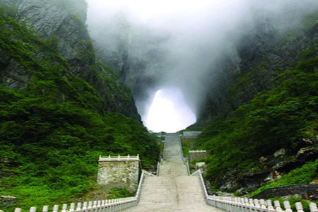 早上8:00長沙火車站集合后,經(jīng)長張高速往張家界市,赴天門山國家森林公園旅游,乘坐“世界第一長高山客運索道(全長7455米,高差1279米)”, 體驗騰云飛翔的刺激震撼,28分鐘到天門山頂:登張家界之巔云夢仙頂,俯瞰張家界全景,體驗凌空獨尊的豪情, 游覽東線碧野瑤臺景區(qū),觀賞奇妙美麗的盆景花園,游覽盆景石區(qū)、天門翻水、北俯視天門、靈泉、靈泉院,登云夢仙頂,體驗“云生腳下、奇峰盡覽、萬象目中”的豪邁感覺。游西線體驗鬼谷棧道的驚心動魄,在峭壁云端縱情尖叫。返凌霄臺欣賞城區(qū)風光、領略山水長卷的磅礴氣勢,攀登 999 級臺階的上天梯,抵達天門洞底,感受造化神奇,盡情欣賞天門洞內(nèi)外的壯麗景色。至天門洞體驗自然造化的神奇和震撼沖擊。乘觀光汽車體驗99彎通天大道奇絕,沿途觀賞七級瀑布、金龜馱元寶、將軍峰、箭桿峰等景觀,天門山氣象獨特,門洞奇絕,植被豐富,歷史悠久,是歷史文化與佛道文化的神秘載體,是自然景觀與人文景觀的完美結合,故也是蜜月度假必游之地。