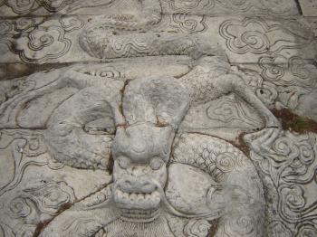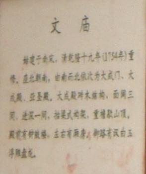 廟前面有學(xué)宮坪,亦名學(xué)坪,坪南端有大明壁。廟宇紅墻黃瓦,氣勢宏偉。正門曰奎星門,前院左右各植檜樹,常年翠綠,散發(fā)幽香??情T內(nèi)有月形泮池,池周護以石欄。泮池附近有石坊三座,正南石坊匾額鐫有“斯文在茲”四字,東西兩坊貫通街衢。通過石坊便是大成門。進門左右是飛檐綠瓦的鐘鼓亭。大成門通向大成殿,有石鋪甬道直抵大殿臺基。臺高一米,全系石塊疊成。臺階分左右兩道,中有石雕盤龍,綴以云海波濤,栩栩如生,躍然石上。大成殿為歇山式重檐結(jié)構(gòu),周圍有16根圓石柱,內(nèi)外枋、檁、藻井、斗拱、扇梧均五彩施繪,黃瓦飛檐,蔚為壯觀。殿后有亞圣殿,與大成門、奎星門前后襯應(yīng),更顯出大成殿主體的雄偉。