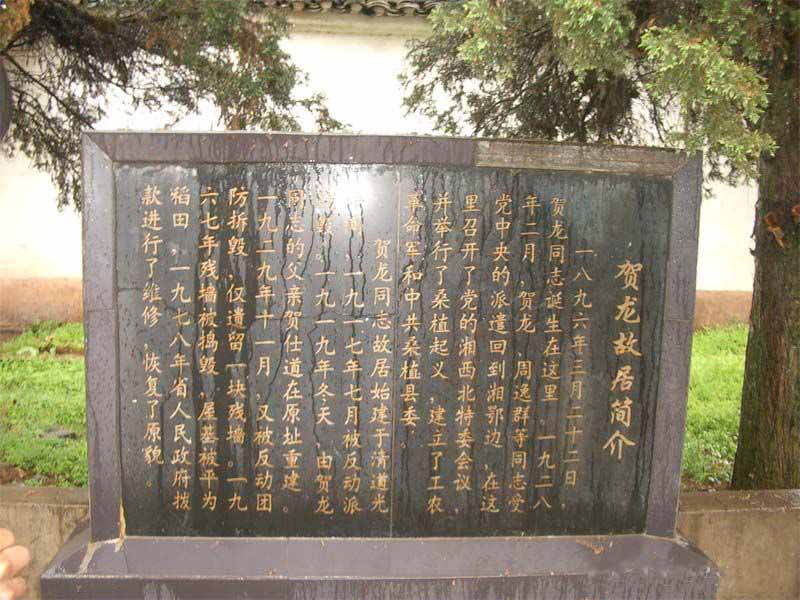 為了紀(jì)念偉大的革命元帥。1977年省縣兩級(jí)政府撥款,賀龍故居按舊居原貌修復(fù)的。賀龍紀(jì)念館于1996年3月25日賀龍誕辰100周年之際竣工落成,大門上首的墨色大理石匾額上,是江澤民親筆題寫的“賀龍紀(jì)念館”幾個(gè)燙金大字。。賀龍紀(jì)念館與賀龍故居、賀龍橋成犄角之勢(shì)。