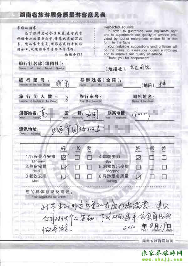 - 游客夏先生為表揚導(dǎo)游李姣姣寫來表揚信致我張家界... [14811]