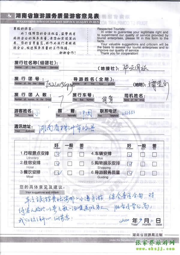 2009年湖南丁先生/女士說(shuō)導(dǎo)游素質(zhì)高,我們很開心很滿意!