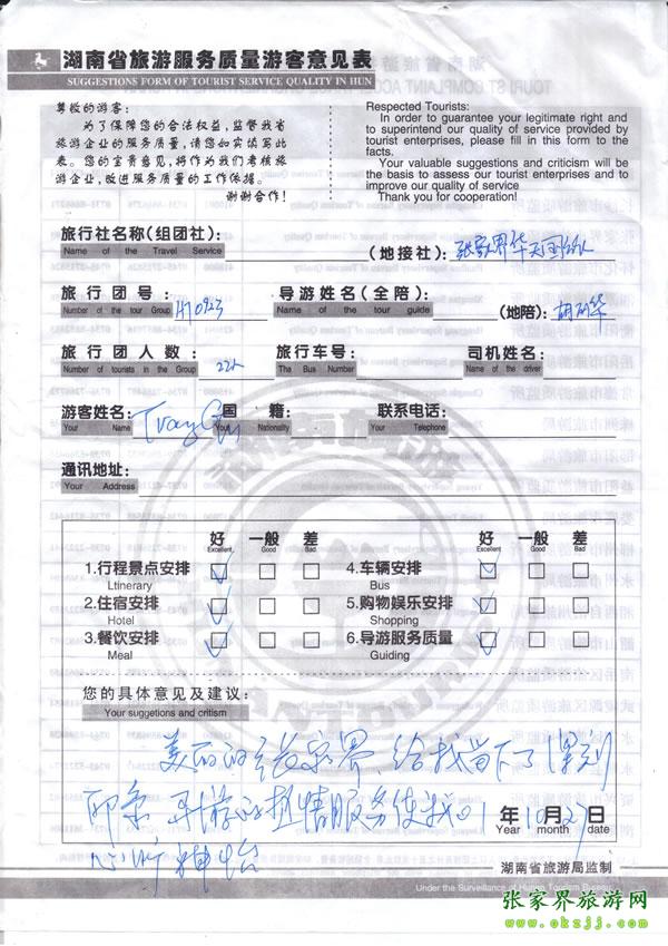 - 游客夏先生為表?yè)P(yáng)導(dǎo)游李姣姣寫(xiě)來(lái)表?yè)P(yáng)信致我張家界... [14811]