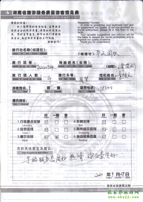 - 游客夏先生為表揚導(dǎo)游李姣姣寫來表揚信致我張家界... [14811]