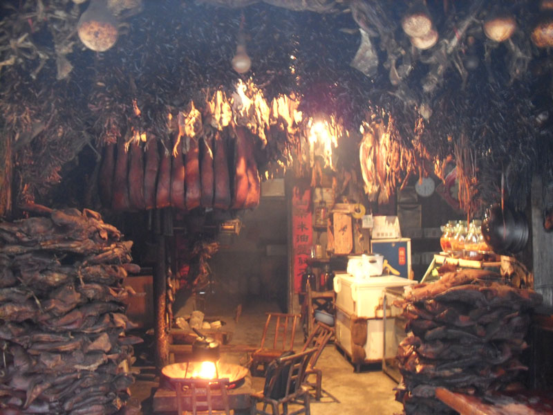 如果你想品嘗正宗的煙熏臘肉,還非得在張家界景區(qū)內(nèi)吃。在景區(qū)內(nèi)當(dāng)?shù)厝碎_的小飯館里可以吃到被炭火烤得烏黑的香噴噴的臘肉,只要把外層洗掉就行了。這種臘肉在城里是不可能吃到的,它是在農(nóng)家的灶上慢慢烤出來(lái)的。