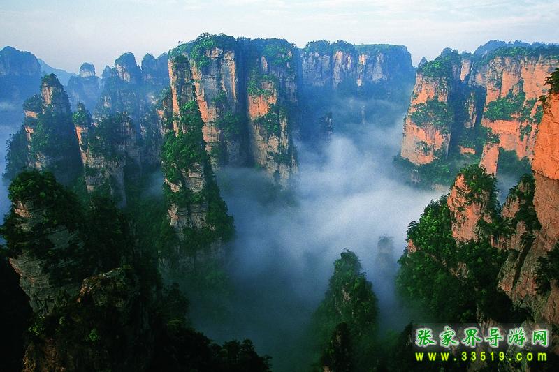 第二天早上,我們參觀了袁家界的風(fēng)景,其中最有名的當(dāng)然數(shù)天下第一橋,這是由兩座巖石山的山頂自然生長(zhǎng)在一起,非人所能為也。天下第一橋的稱號(hào)當(dāng)之無(wú)愧啊。當(dāng)然在袁家界,后花園也是不能不看的。張家界號(hào)稱“峰三千,水八百”,在這里你就能明顯的感覺(jué)到這句話的前半句是那么的實(shí)在??赐陱埣医绲暮诵脑医纾覀兂塑嚨搅?a class="insidelink" href="http://www.yalota.com/scenic/zjjjq/1529295057.html" title="天子山">天子山(張家界景區(qū)內(nèi)的最高的地方)。玩了賀龍公園、御筆峰、仙女散花、西海、石船出海、仙人橋、天子廟、十里畫(huà)廊、一步難行。不巧的是,那天山上下了一點(diǎn)陣雨,雨后一條彩虹掛在天上,更重要的是山上起了一點(diǎn)霧,使整座山都籠罩在霧中,若隱若現(xiàn),看上去就象是在云海中,好象老天特地配合我們似的,難得一見(jiàn)的西海等正好被我們趕上了。江導(dǎo)告訴我們,這樣的機(jī)會(huì)是很難得的,可能是張家界為了感謝我的再次到來(lái),給了我一個(gè)特別的禮物吧。我大笑。晚上趕到昨天住的地方去住宿。不提。