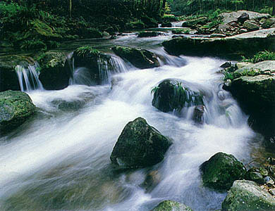 金鞭溪是天然形成的一條美麗的溪流,因金鞭巖而得名。溪水彎彎曲曲自西向東流去,即使久旱,也不會(huì)斷流。